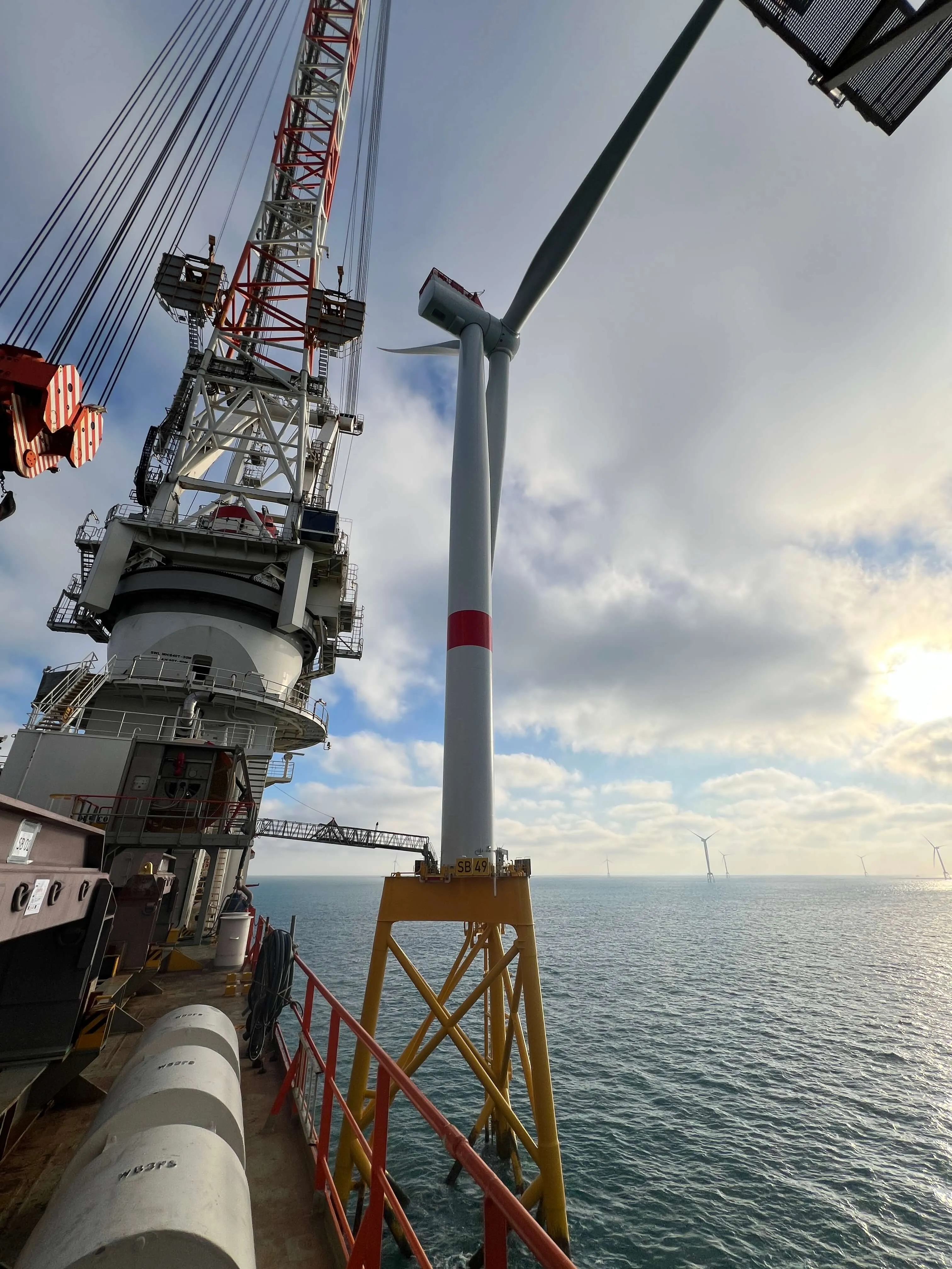 "Moins de trois ans après le début des travaux de construction et d'installation, la dernière éolienne de 8 MW a été installée sur sa fondation jacket (structure métallique pour les éoliennes en mer, NDLR), le 17 décembre 2023", s'est félicité le groupe dans un communiqué de presse.