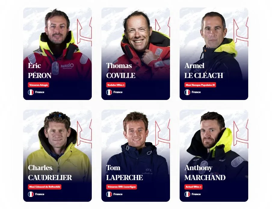 Dans la liste des engagés, on retrouve des noms connus. Parmi eux, Armel Le Cléac'h, vainqueur du Vendée Globe en 2017, ou encore Thomas Coville, navigateur de longue date sur son multicoque Sodebo. D'autres, moins connus du grand public certes, tenteront de jouer les trouble-fête, comme Tom Laperche, Anthony Marchand, Charles Caudrelier, mais aussi Éric Péron.