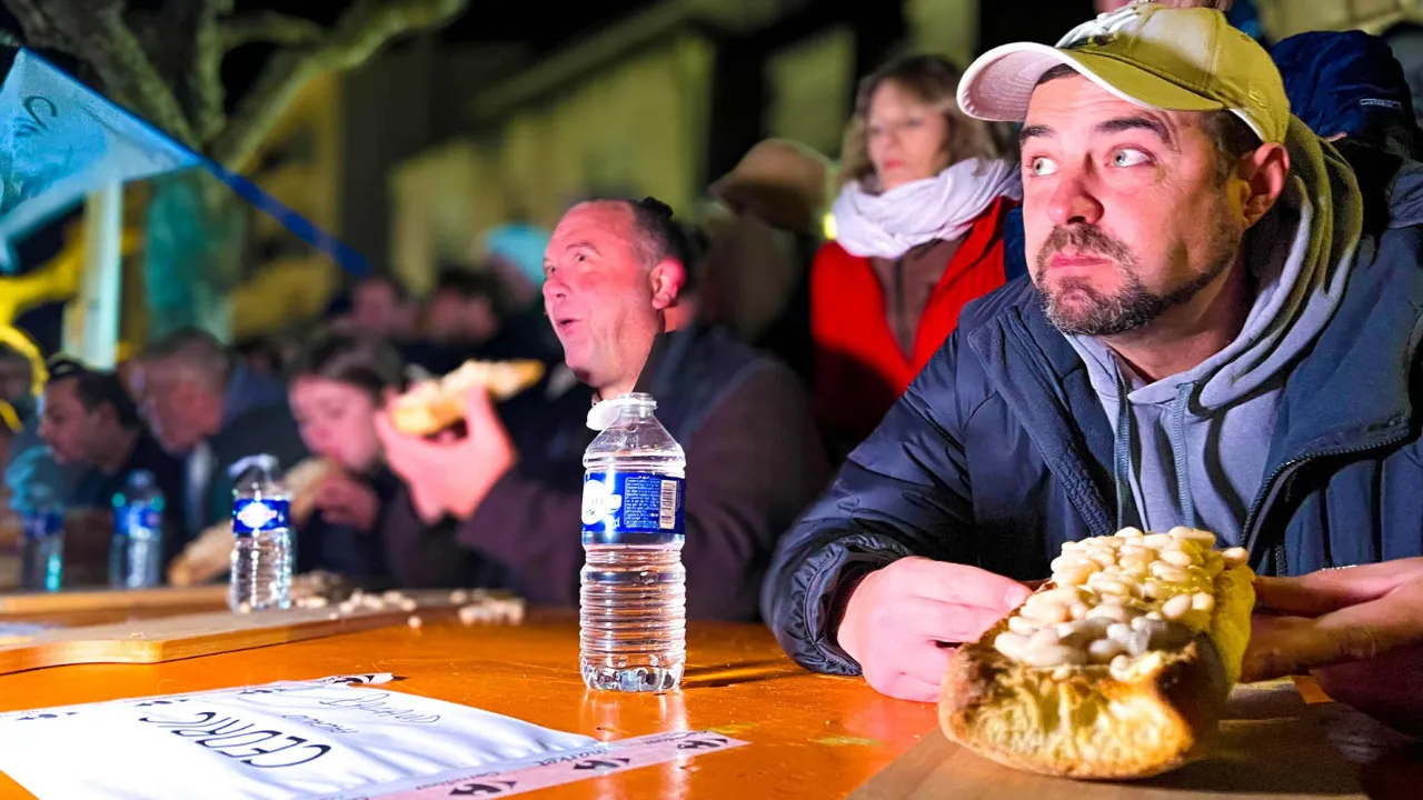 La grillée de mogettes, c’est une tartine typiquement vendéenne : une tranche de pain beurrée, recouverte de mogettes, ce petit haricot blanc cultivé ici depuis des générations. Un produit simple, paysan, devenu un symbole local. Chaude, c’est un régal. Ici, c’est un défi. Et c’est précisément ce défi que les concurrents avalent, bouchée après bouchée, le plus vite possible dans le froid.