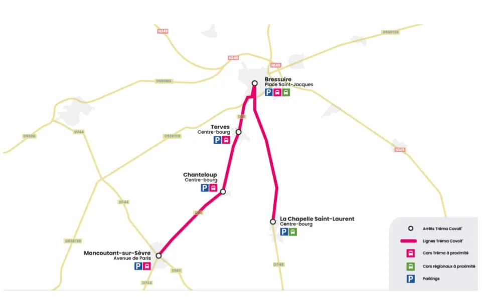 Deux lignes sont opérationnelles depuis le 18 novembre : l’une au départ de Bressuire vers Montcoutant-sur-Sèvre, l’autre au départ de Bressuire vers La-Chapelle-Saint-Laurent.