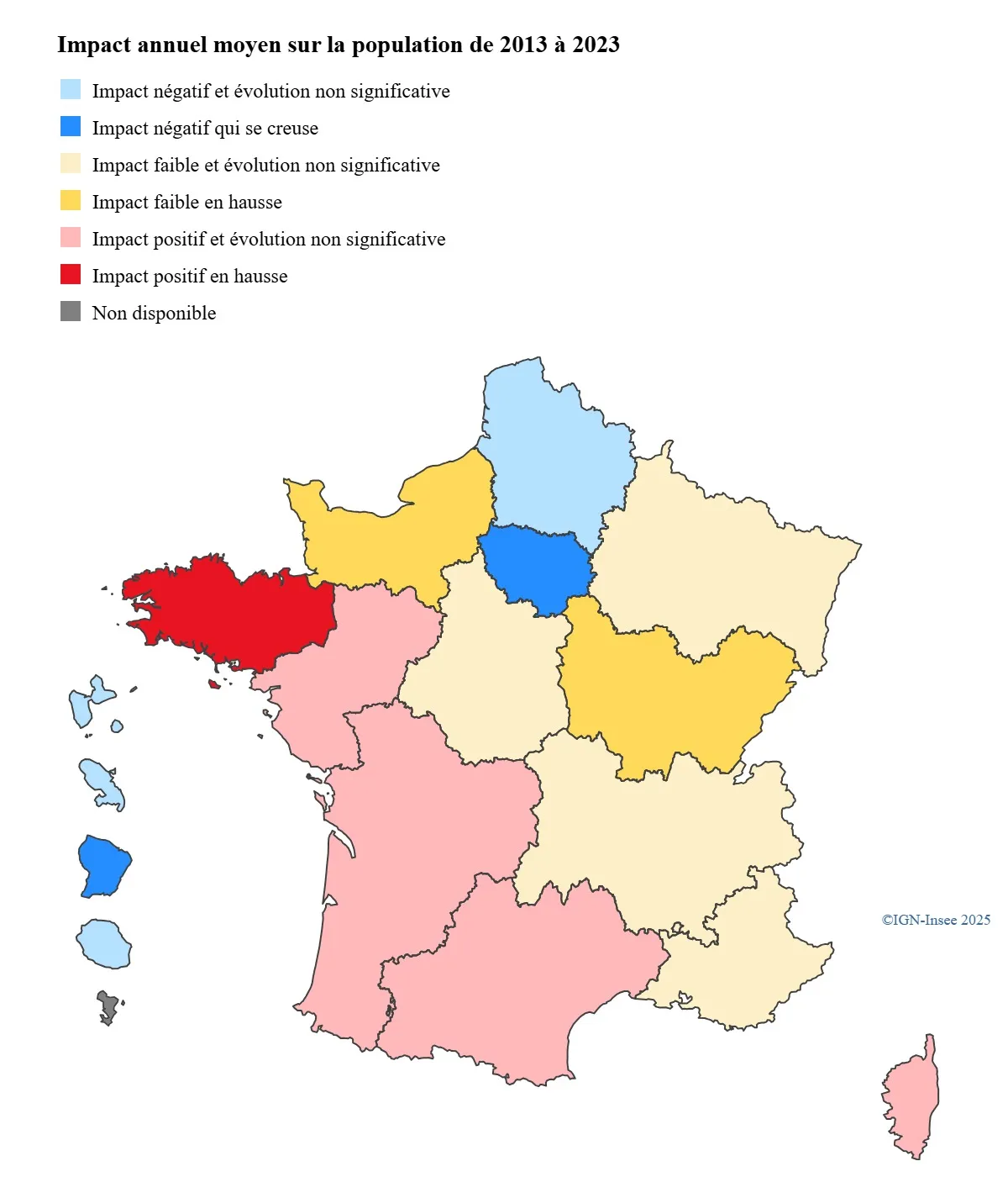 S'ils ont donc préféré partir plus loin, ce sont les régions du Grand Ouest qui en ont particulièrement profité. La Bretagne, la Nouvelle-Aquitaine et l'Occitanie sont celles dont la population s’accroît le plus du fait des déménagements, avec en moyenne par an une augmentation de plus de 5 habitants pour 1 000 résidents. "La région Pays de la Loire a également un solde entrées-sorties positif sur dix ans, mais il diminue depuis la crise sanitaire", précise l'Insee.