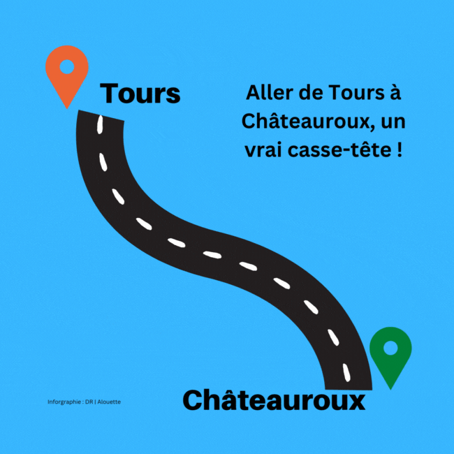 Depuis 1971, il n’y a plus de trains qui circulent entre Tours et Châteauroux. Deux options s’imposent alors, prendre la voiture et s’engager sur la D943 où cohabitent routiers et automobilistes. Ou alors prendre le train et subir le jeu des correspondances, avec le lot d’imprévu que cela peut avoir.