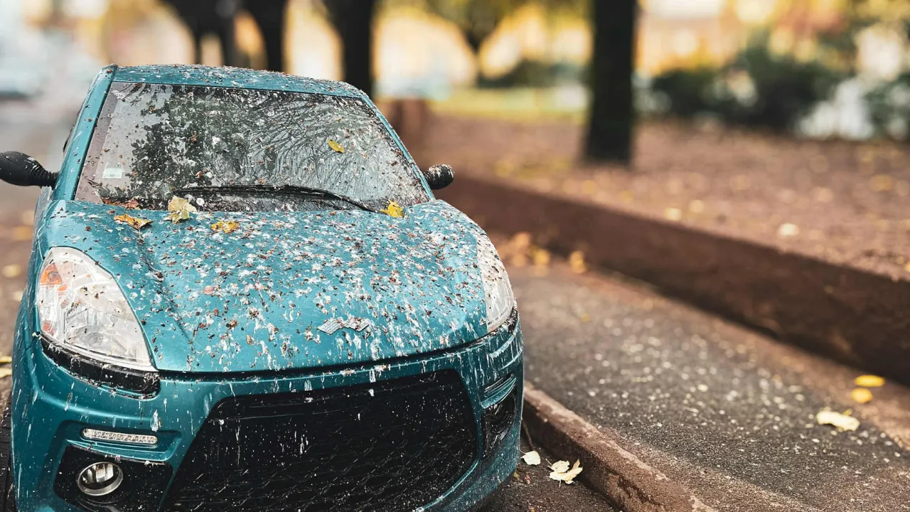 Voiture recouverte de fientes, place Simone Veil à La Roche-sur-Yon - Alouette DR