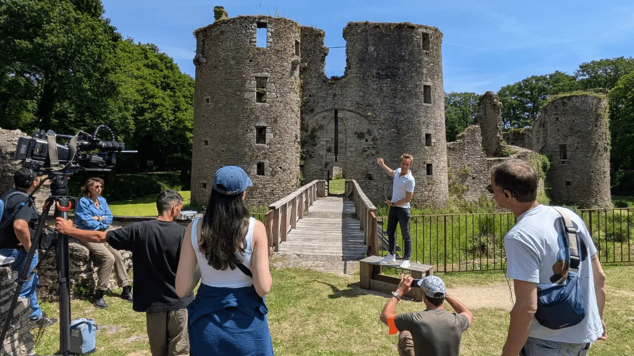 Cyril Féraud devant le château de Ranrouët, lors du tournage de l'émission | CapAtlantique