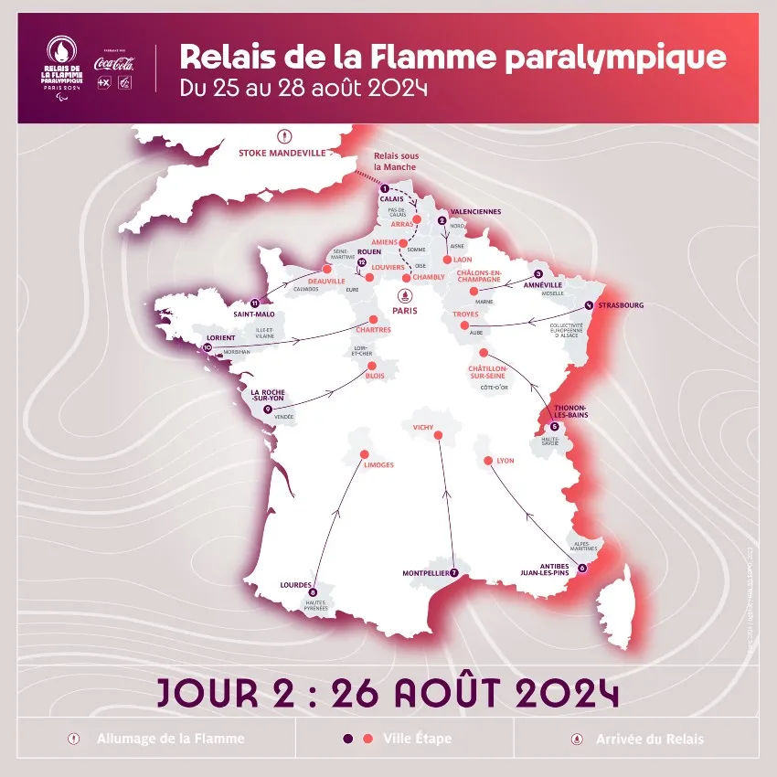 Le relais traversera environ 60 villes, avec des étapes à Marseille, Lyon, et Lille, et mettra l'accent sur l'inclusion, l'accessibilité et les valeurs du parasport.