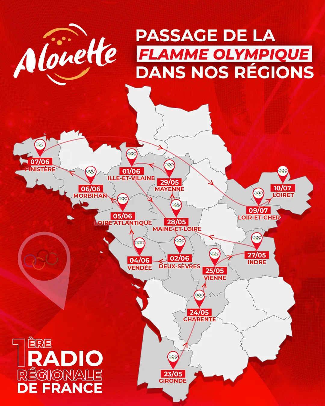 Dès ce samedi 25 mai, la flamme se rendra dans la Vienne, suivez le parcours de la flamme olympique avec Alouette !