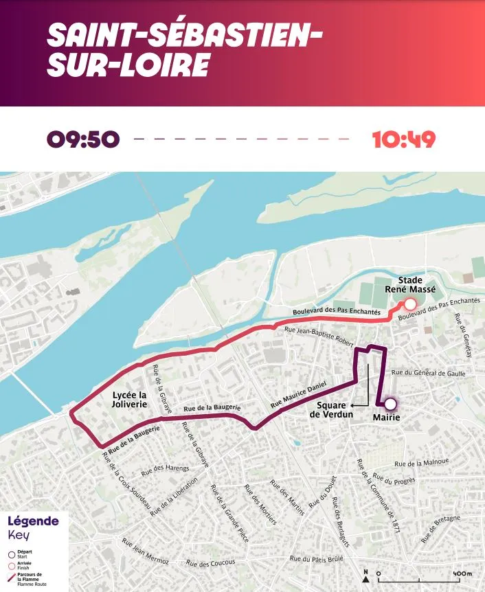 C’est au bord de l’eau que va débuter l’étape du jour, avec la Loire en toile de fond. C’est au stade René Massé, situé à Saint-Sébastien-sur-Loire, que la flamme va faire son grand départ pour l’étape du jour (9h50). Elle continuera son aventure en bord de Loire dans la commune d’Ingrandes-le-Fresne-sur-Loire (à partir de 11h).