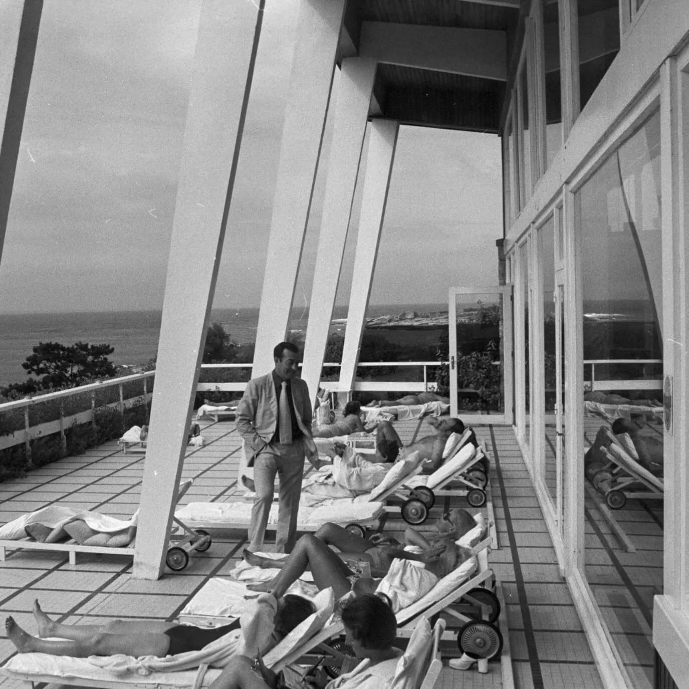 Louison Bobet et des clients du centre de thalassothérapie de Quiberon (aujourd'hui Sofitel) | Facebook Sofitel Thalassa Quiberon