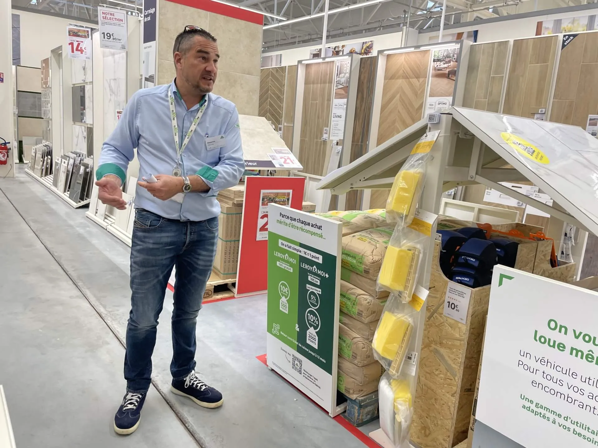 Dans les allées, l'espace est donc optimisé pour stocker les 29 000 références… contre 34 000 par exemple à Puilboreau. Les rayons comptent une étagère supplémentaire. Le magasin a aussi renoncé à la traditionnelle cour des matériaux. Elle est intégrée au magasin, avec 90% de références, accessibles grâce à des échantillons de chaque produit.
