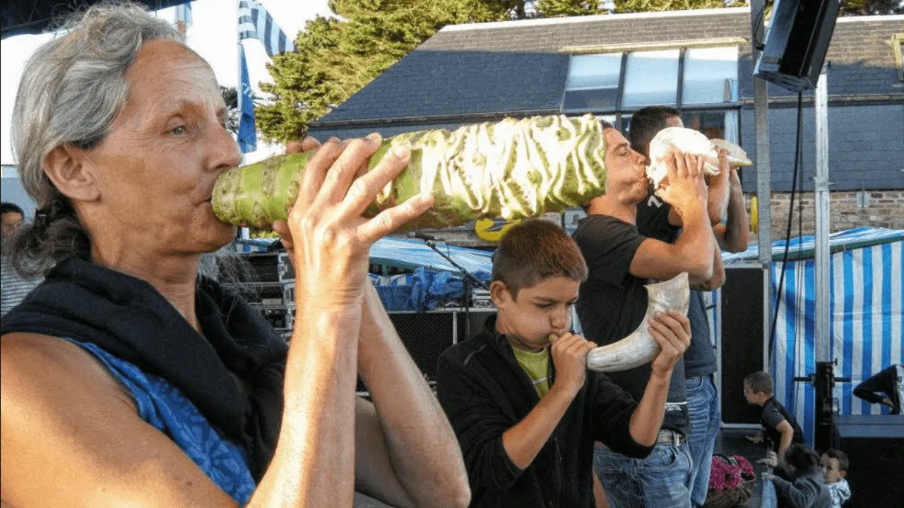 À Plouarzel, on ne souffle plus pour cracher mais cette fois-ci pour faire du bruit le plus longtemps possible dans un korn bout. Cet objet est en réalité l'ancêtre du téléphone à l'époque, quand les femmes des paysans voulaient avertir leur mari que le déjeuner était prêt.