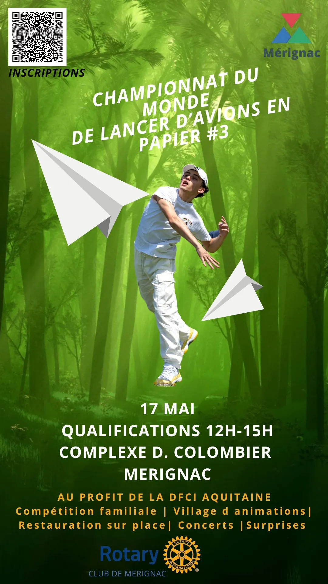 Le championnat, organisé par le Rotary Club de Mérignac et la ville de Mérignac, réunit des participants venus du monde entier. Leur défi : tenter de battre le record de la distance de lancer d’avions en papier : 47,17 mètres mais aussi de la durée de vol : plus de 7 secondes !