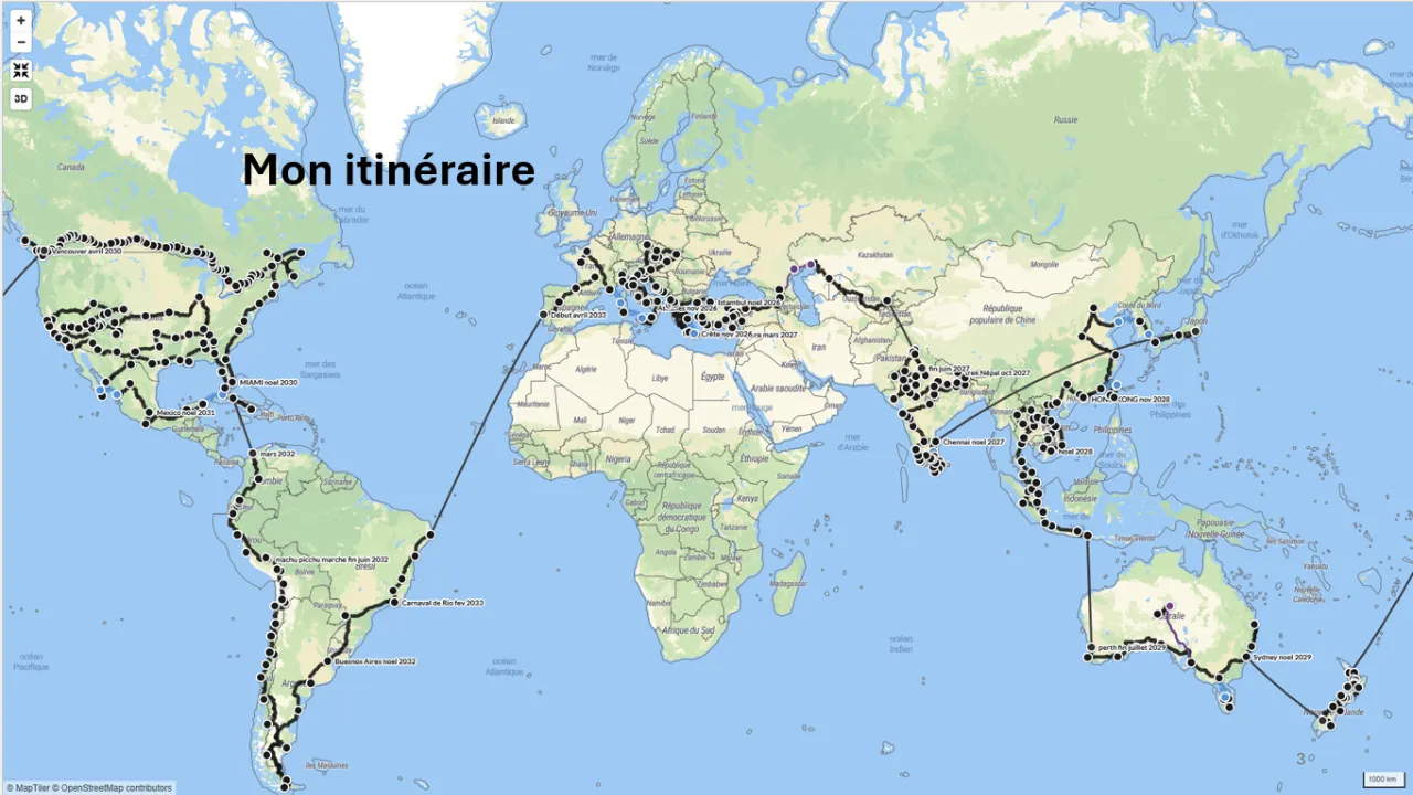 Son itinéraire la mènera d’abord en Europe, puis en Asie, jusqu’en Inde. Avant de rejoindre le Japon, l’Australie, la Nouvelle-Zélande, puis les Amériques. Certains trajets se feront en avion, faute d’alternative. Mais la règle reste la même : avancer, étape par étape. Une centaine de kilomètres par jour. Au rythme du corps et des rencontres.